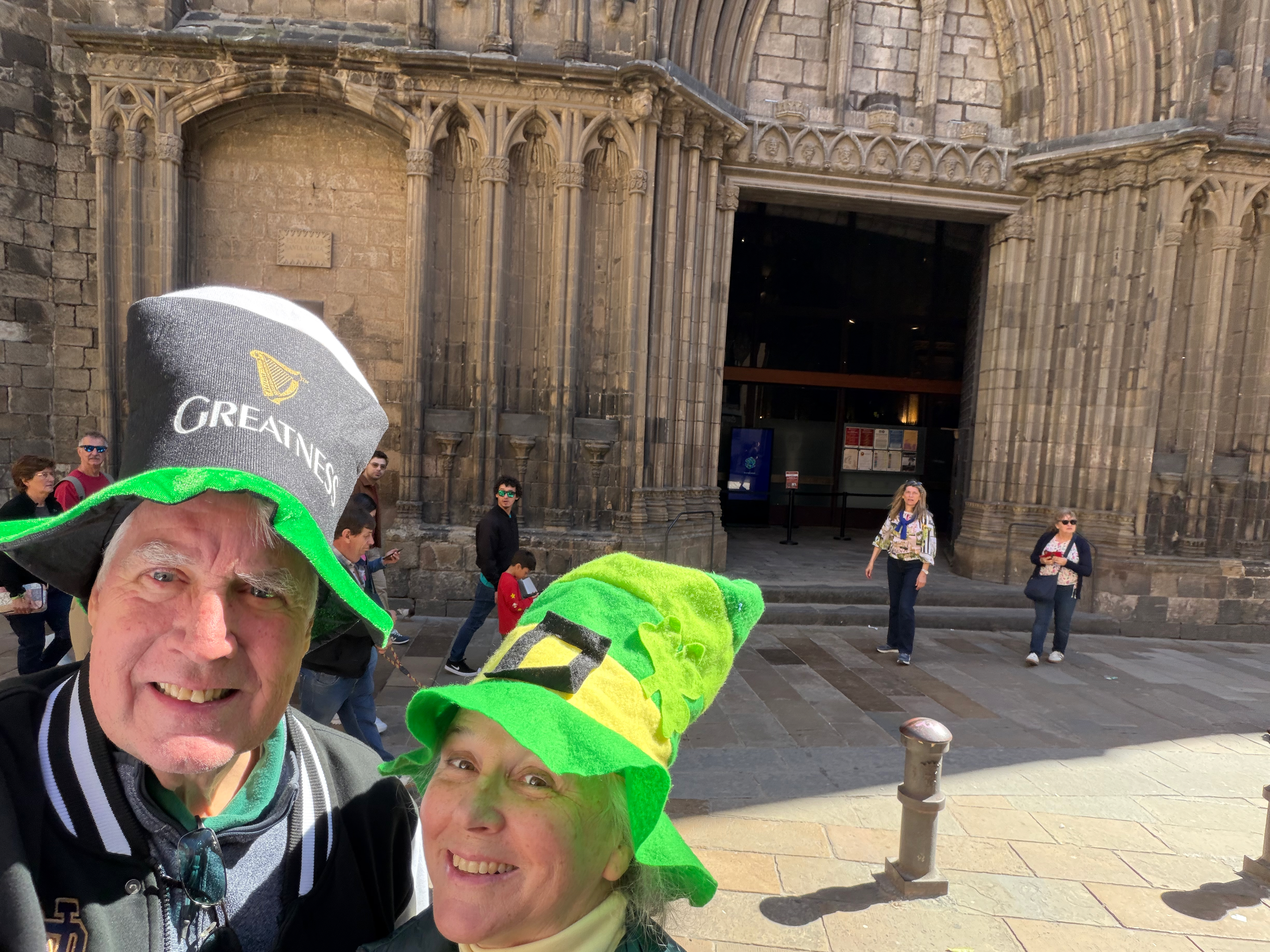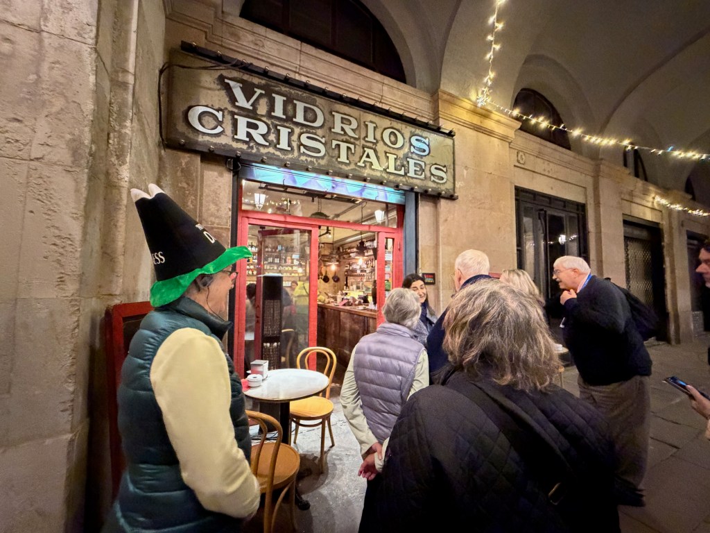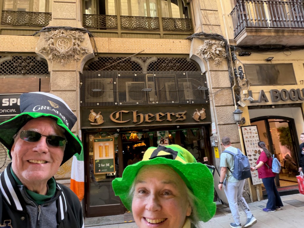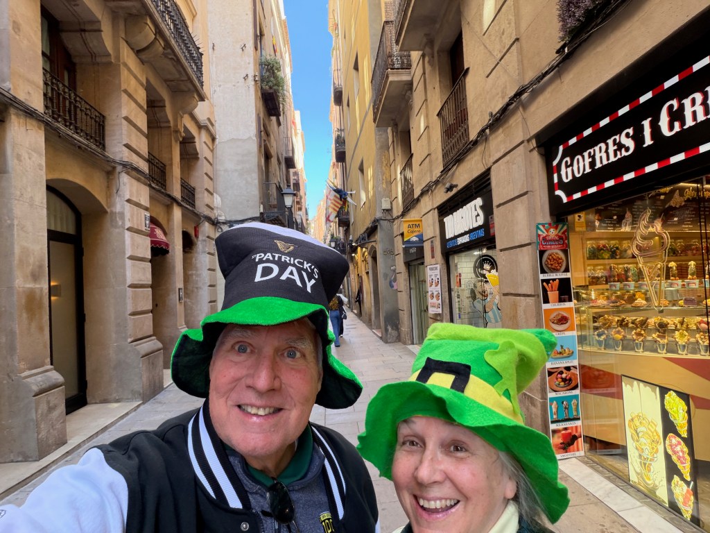 We then went out to explore. ChatGPT said there was a festival at the Plaça De Pi. We did not find one but we did find the church Santa Marie del Pi. We went in and said a prayer for grandson Águistín born on pi day (3 days ago). Then we found an Irish pub serving Guinness, of course we had to stop. Nana found her theme song for 2026- Irish Pub Song by the High Kings, the theme is “Wherever you go around the world, you’ll find an Irish pub…”