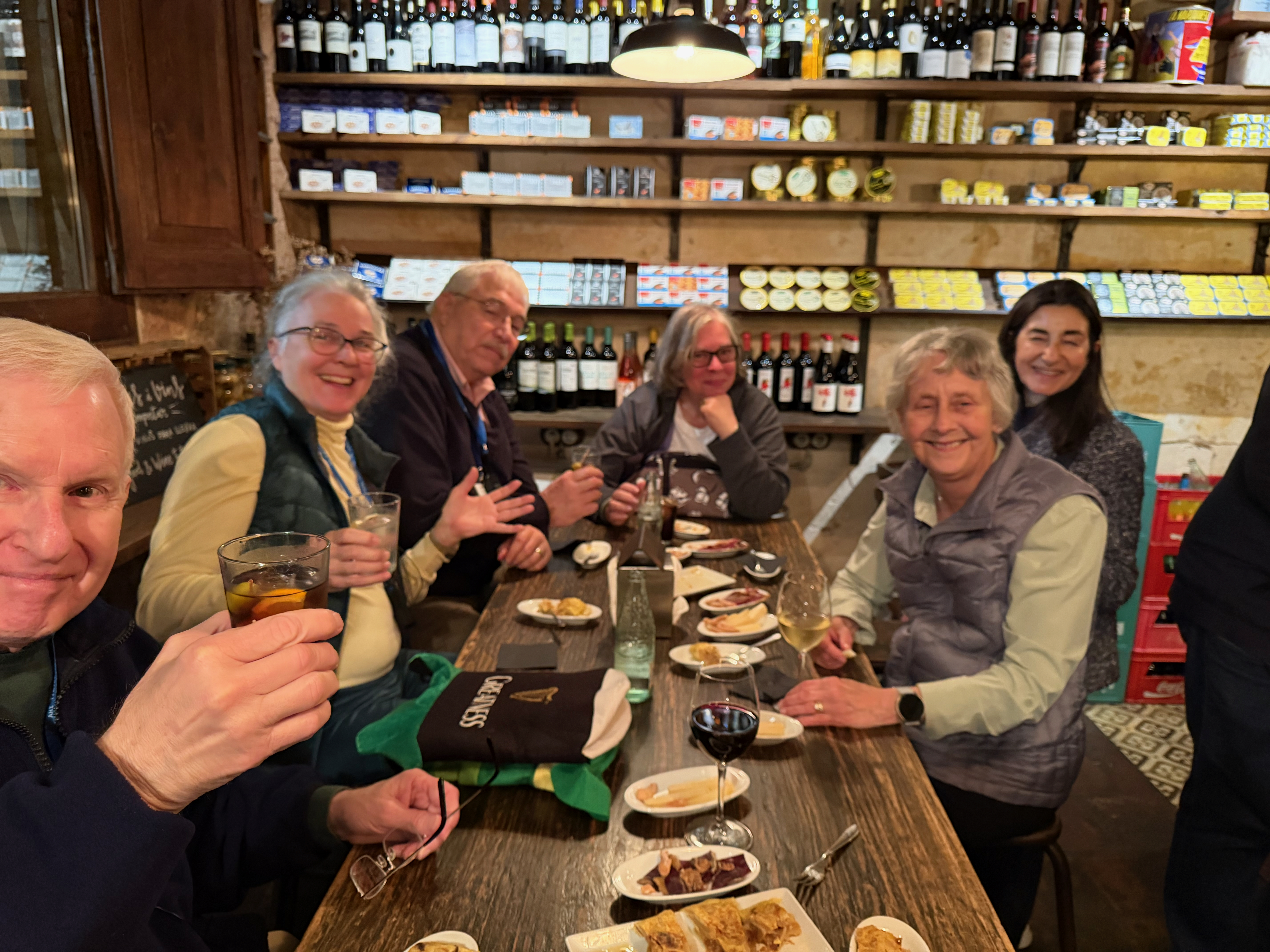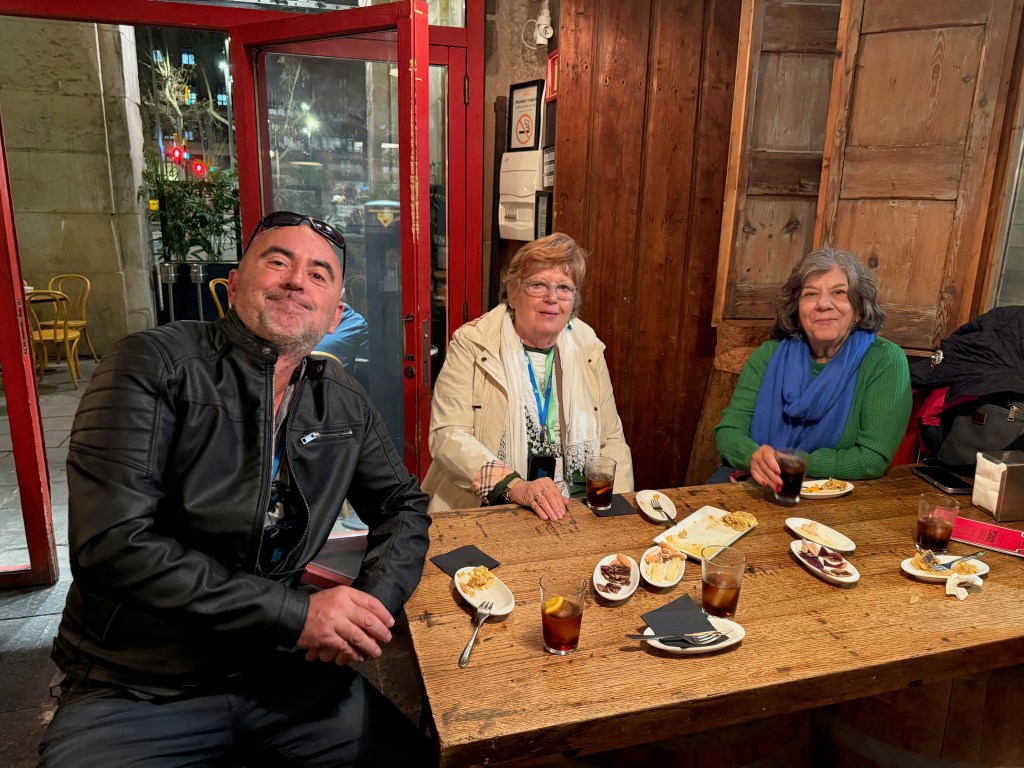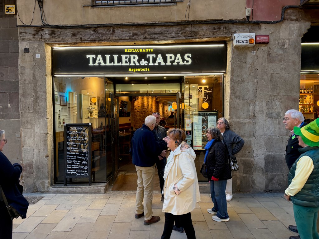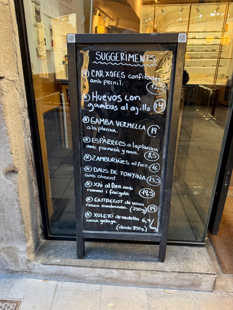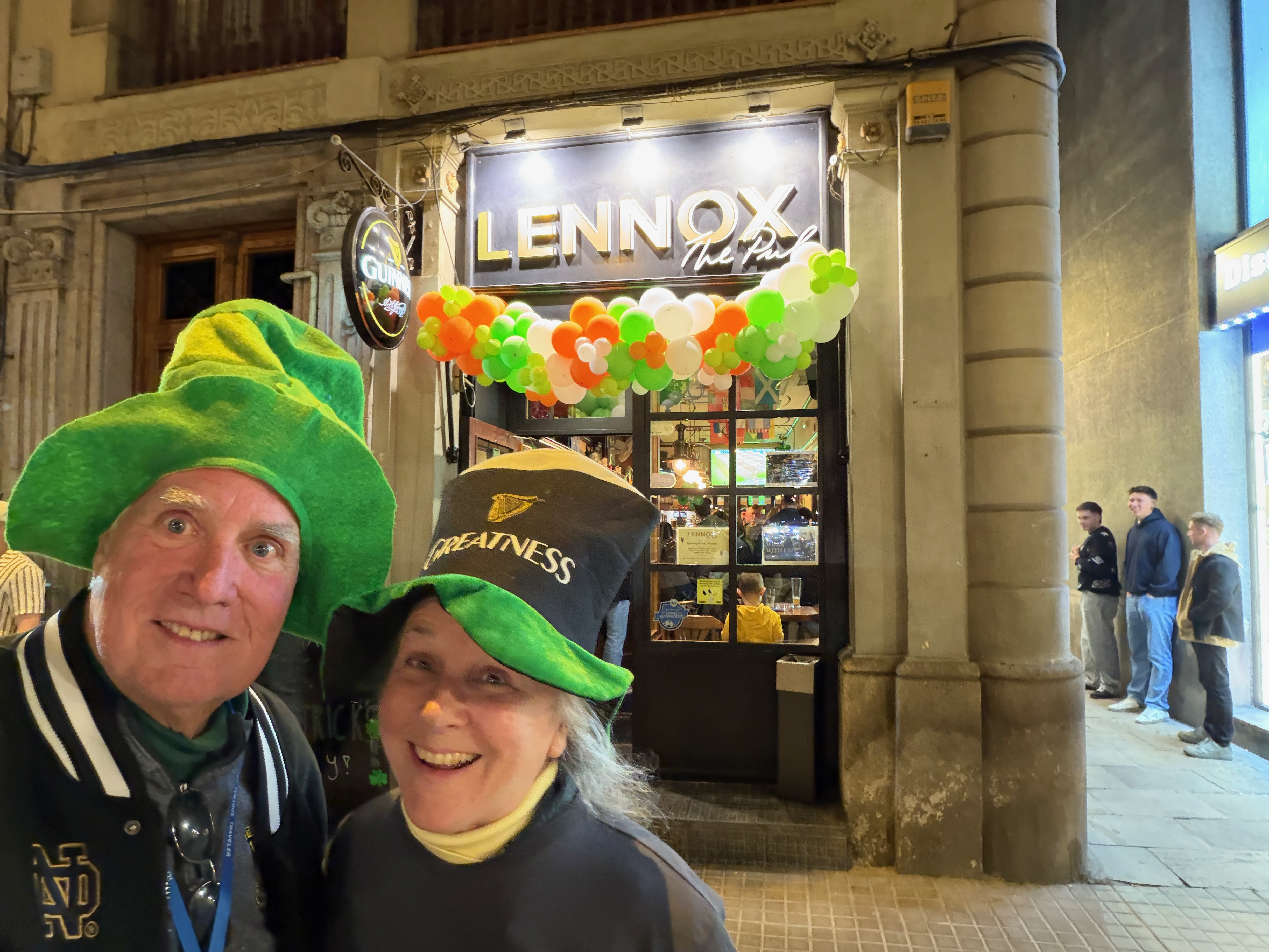 We then went out to explore. ChatGPT said there was a festival at the Plaça De Pi. We did not find one but we did find the church Santa Marie del Pi. We went in and said a prayer for grandson Águistín born on pi day (3 days ago). Then we found an Irish pub serving Guinness, of course we had to stop. Nana found her theme song for 2026- Irish Pub Song by the High Kings, the theme is “Wherever you go around the world, you’ll find an Irish pub…”