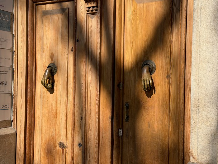 Things I Noticed Today in Barcelona: Crazy door knockers that look like hands. You can see the Artistic influence everywhere.